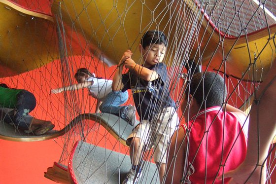 This exhibit is the only "adult-free" area in the Museum. Parents can follow their child’s climbing fun from the accessible ramp.